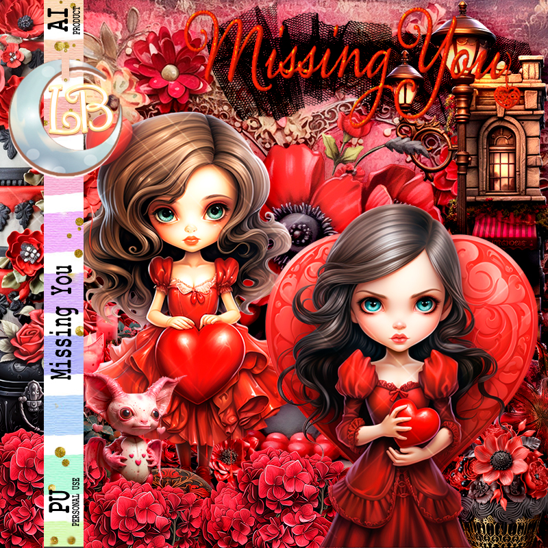 80 elements and 12 papers. The kit contains 2 chibi dolls.