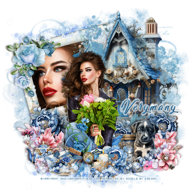 Resize element 74 to 20%, paste above the dog, duplicate, resize to