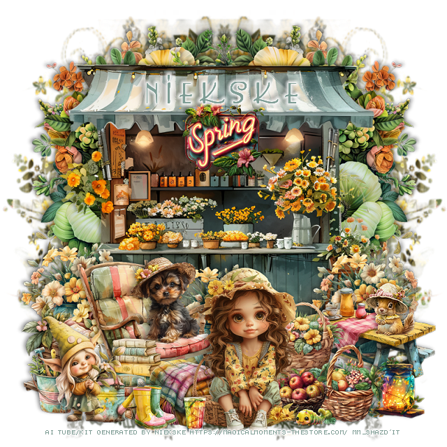 Resize element 43 to 20%, paste on the bottom left above the flower stand,