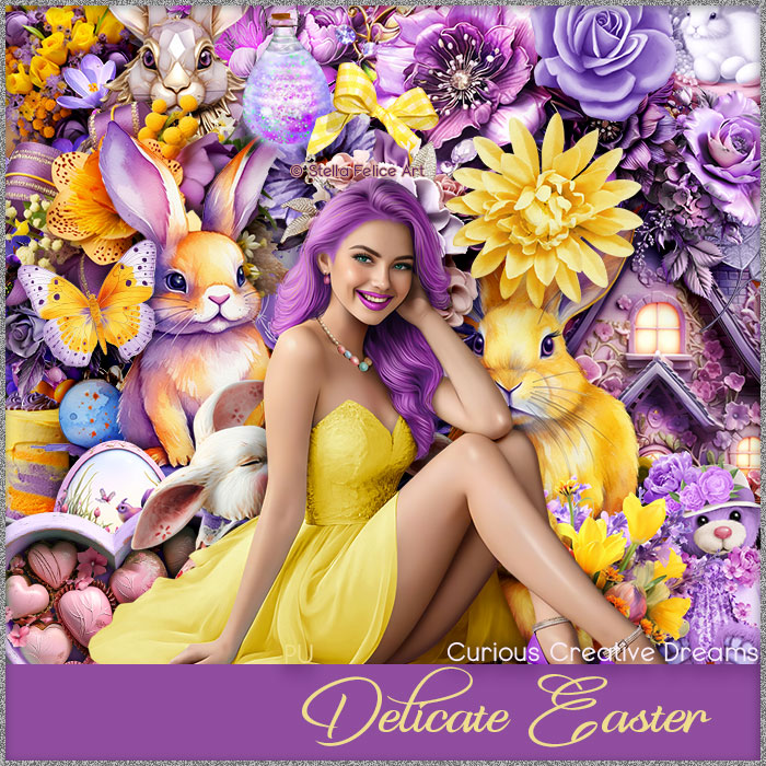 Resize element 53 to 50%, paste at the bottom behind the rabbit.