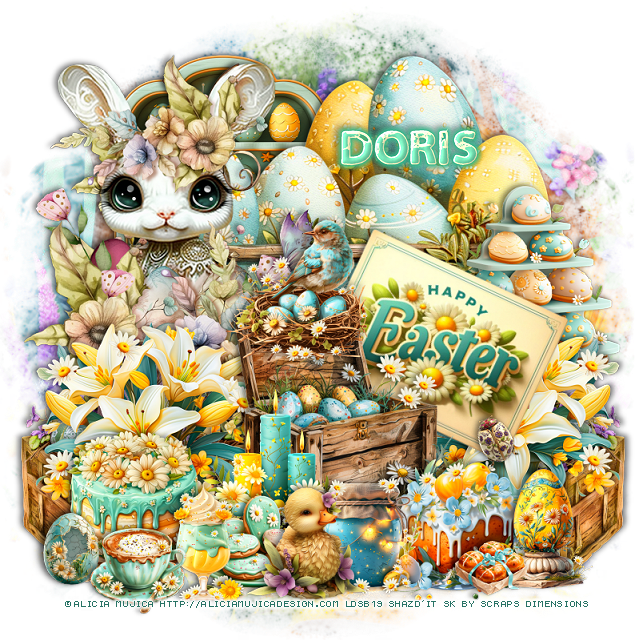Resize element 92 to 25%, paste at the bottom left by the cake.