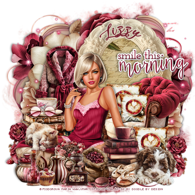 Resize element 106 to 30%, paste at the bottom right behind the pillow.
