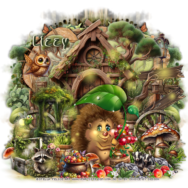 Resize element 26 to 50%, paste behind the mushroom, duplicate, mirror.
