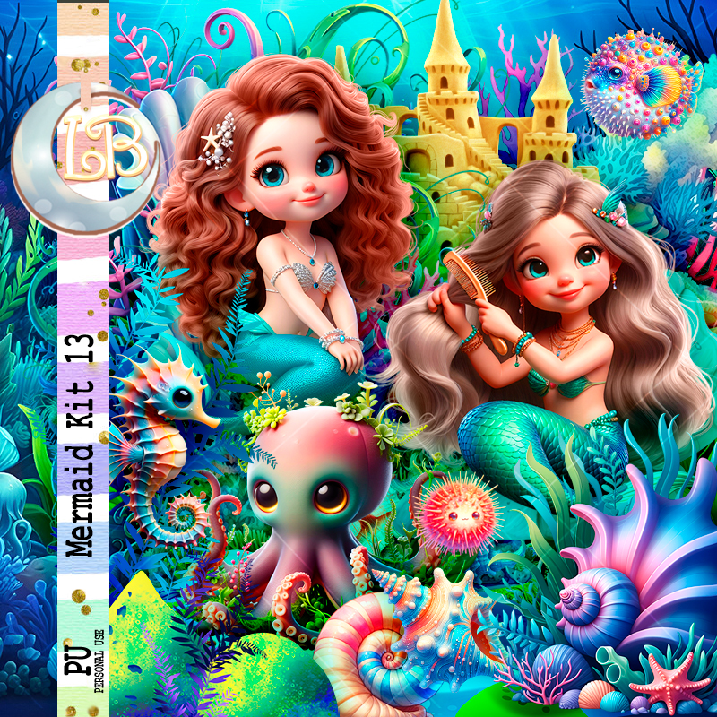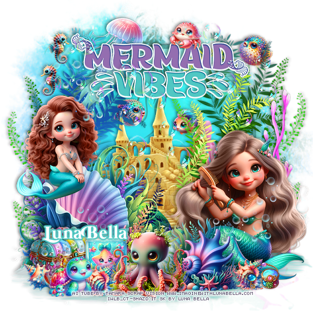 Paste element 21 to the top above the wordart, erase any on the mermaids faces.