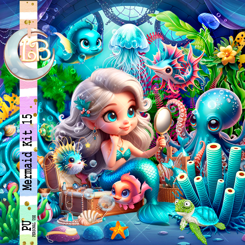 Resize AlEl 9 to 30%, paste on the right behind the octopus, duplicate, mirror.