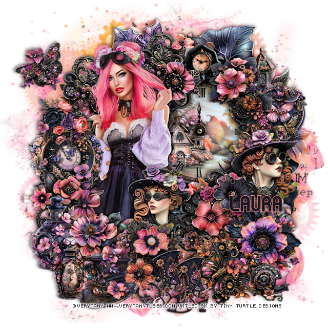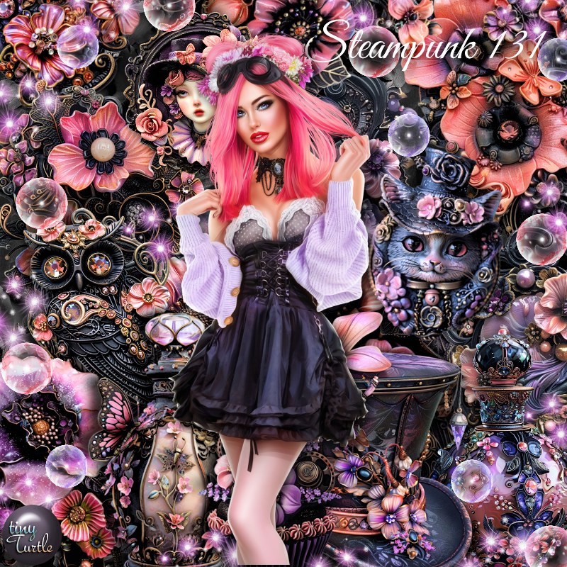 Resize element 119 to 25%, paste at the bottom left above the hat.