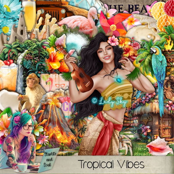 Resize element 99 to 35%, paste at the bottom left below the coconut.