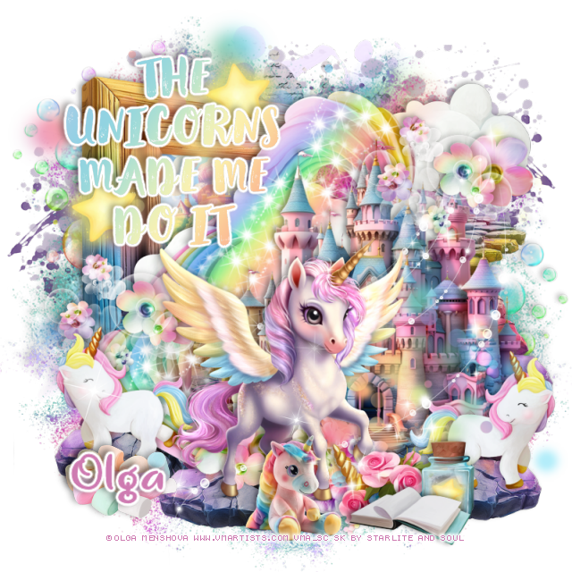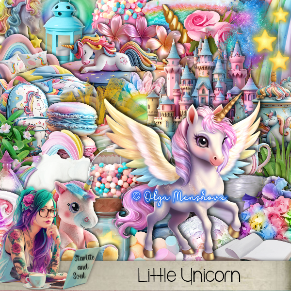 Resize element 119 to 30%, paste at the bottom below the unicorn.