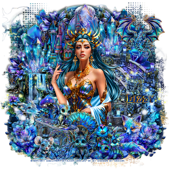 Resize element 90 to 65%, paste on the left below the crystal and waterfall,