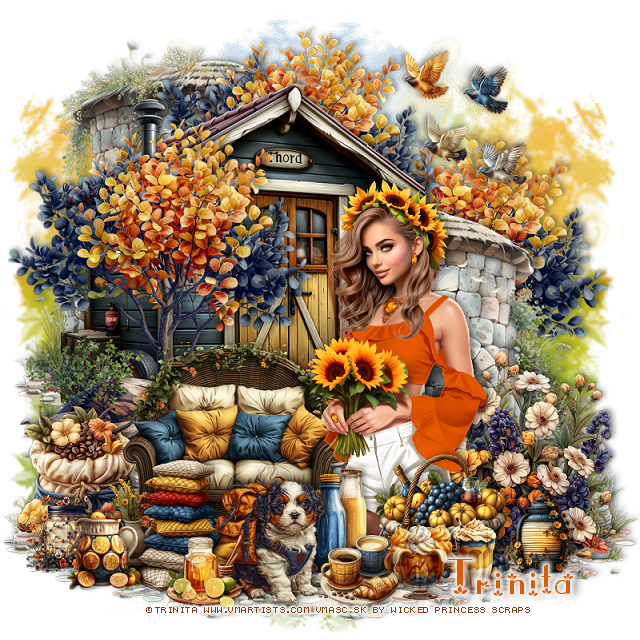 Resize element 116 to 15%, paste at the bottom by the dog.