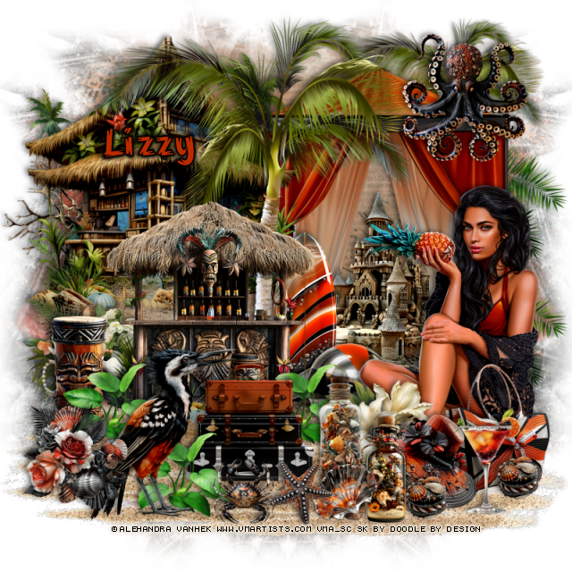 Resize element 73 to 45%, paste above the palm tree by the bar.