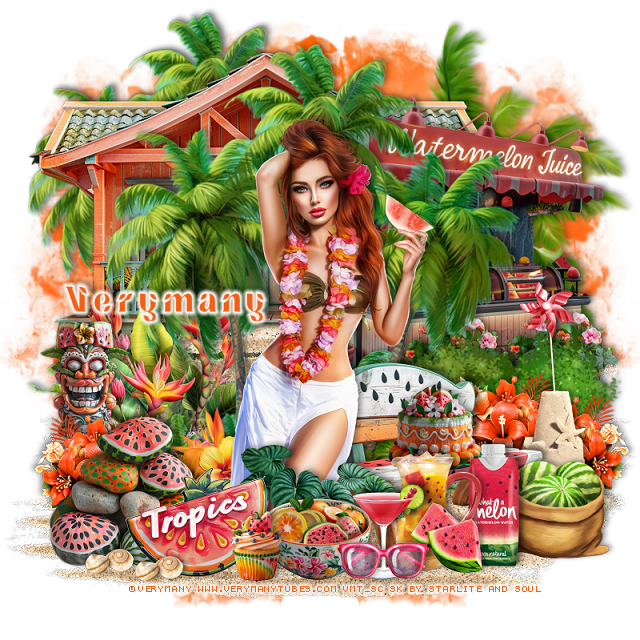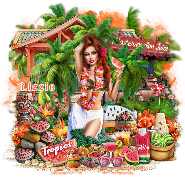 Resize element 17 to 65%, paste behind the palm trees on the right.