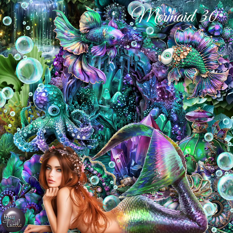 Resize element 7 to 30%, paste at the bottom right below the crab.