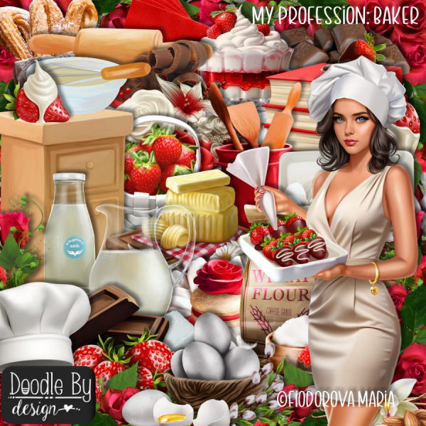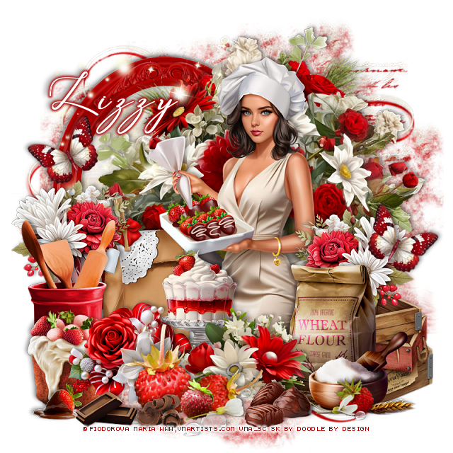 Resize element 132 to 40%, paste on the bottom left below the strawberries.