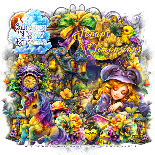 Resize element 23 to 65%, paste below the unicorn on the left.