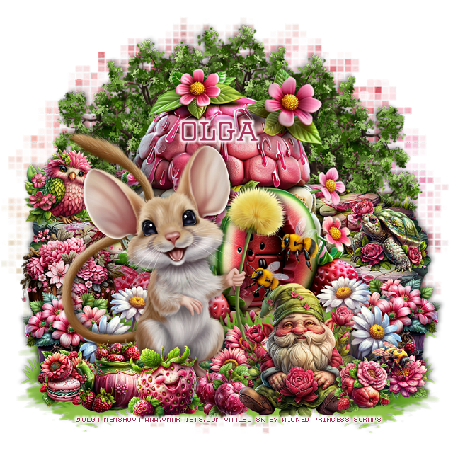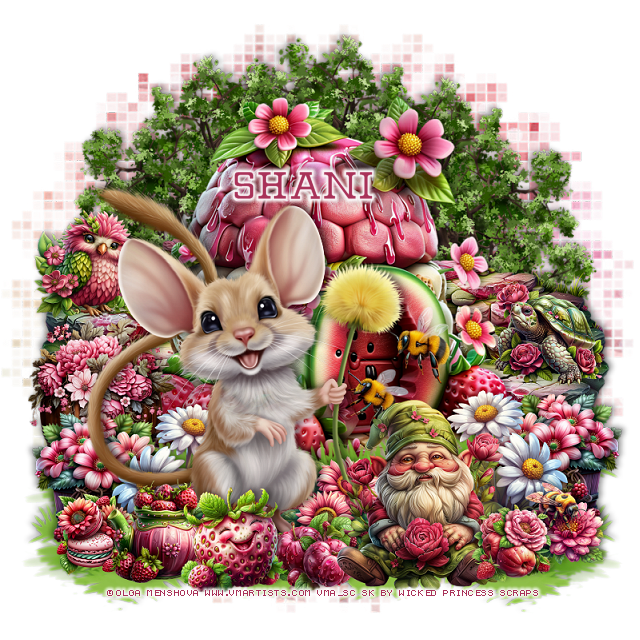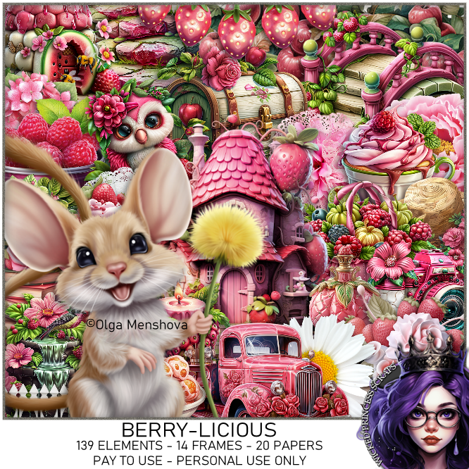 Resize element 128 to 20%, paste at the bottom left below the strawberry.