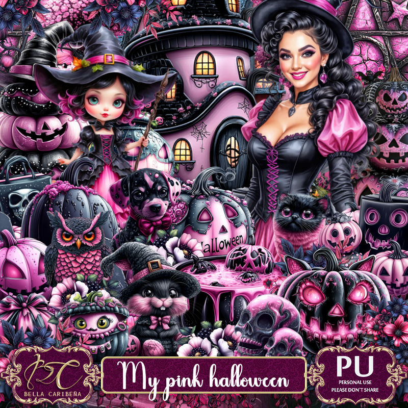 Resize element 74 to 30%, paste at the bottom above the pumpkin.