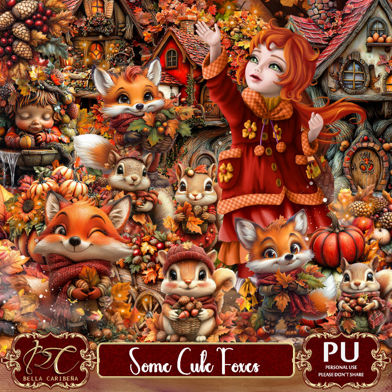 Resize element 31 to 35%, paste on the left behind the foxes.