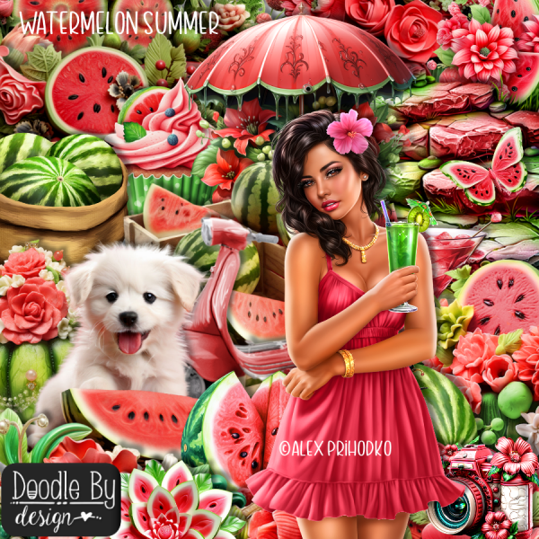 Resize element 135 to 40%, paste at the bottom left below the watermelons.