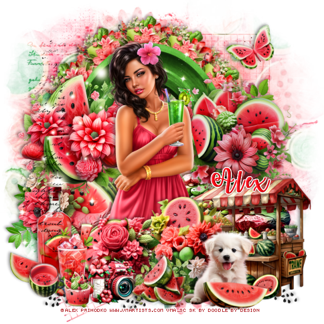 Resize element 82 to 50%, paste on the left below the watermelon.
