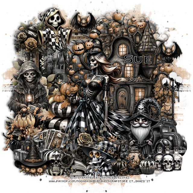 Resize element 63 to 30%, paste on the left below the pumpkins.