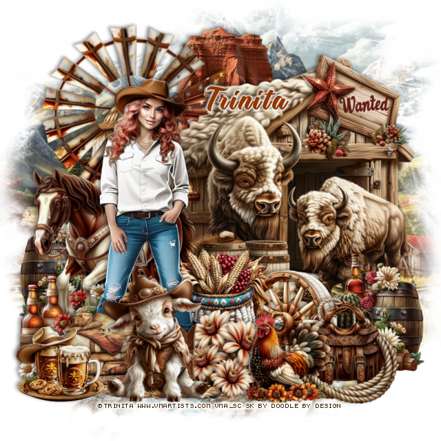 Resize element 74 to 40%, paste on the right above the buffalos, duplicate,