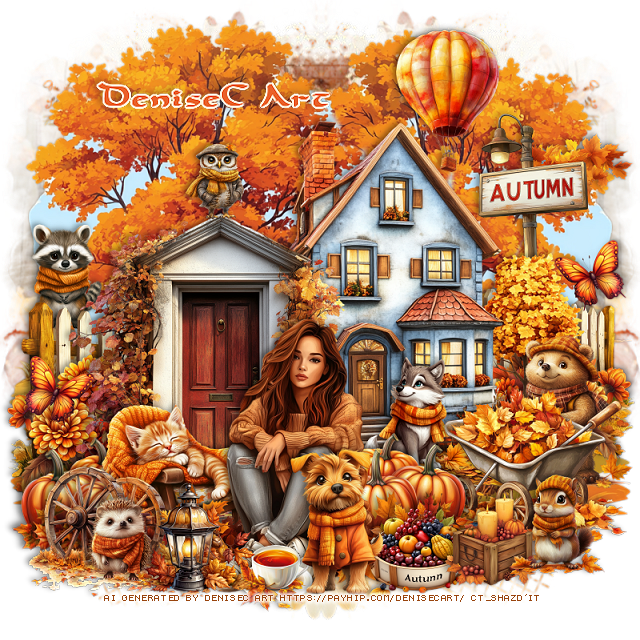Resize element 50 to 15%, paste below the wheel barrel behind the pumpkins.