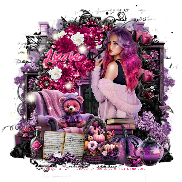 Resize element 126 to 35%, paste on the right below the purple flowers.