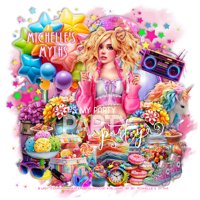 Resize element 125 to 30%, paste at the bottom right below the cake.