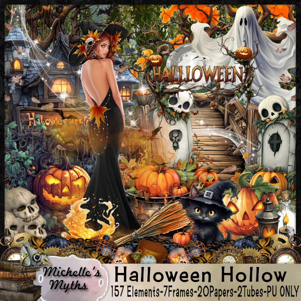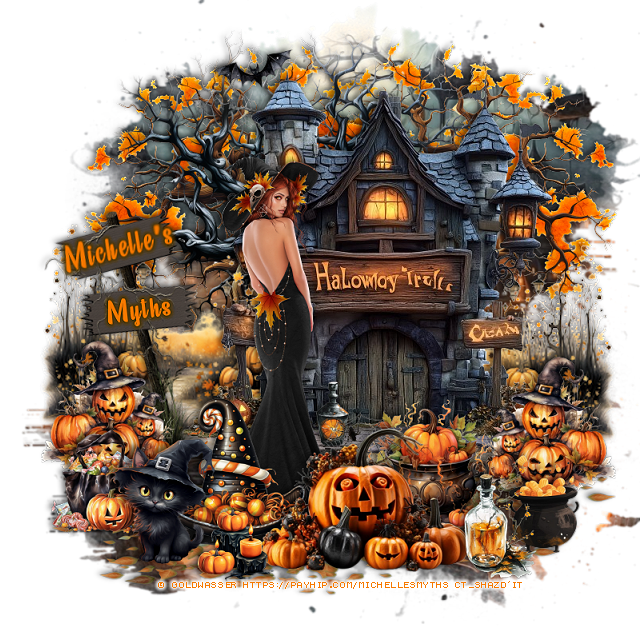 Resize element 91 to 25%, paste at the bottom right above the pumpkins.