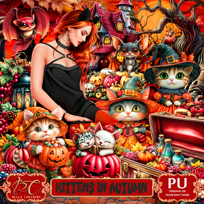 Resize element 32 to 35%, paste at the bottom right below the kittens.