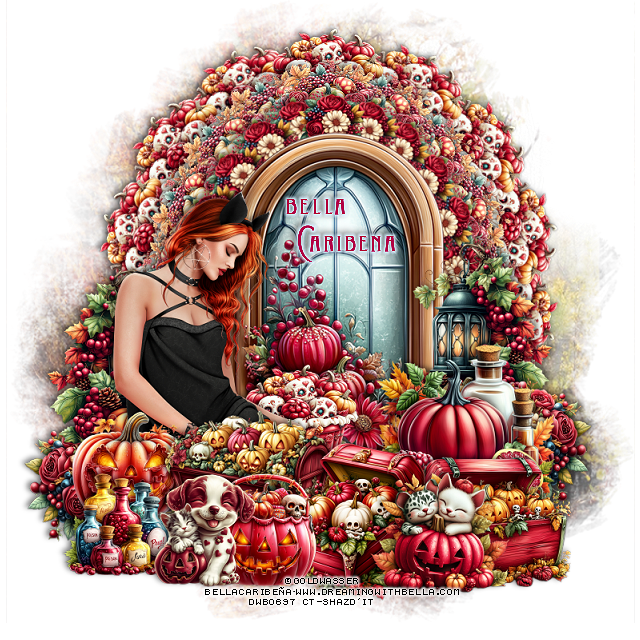 Resize element 5 to 35%, paste on the bottom left below the pumpkin, duplicate, mirror.