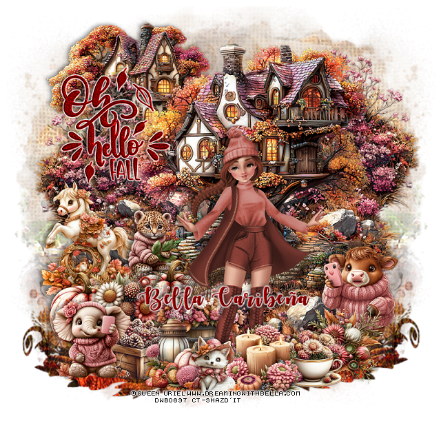 Resize element 91 to 35%, paste on the left below the pumpkins.