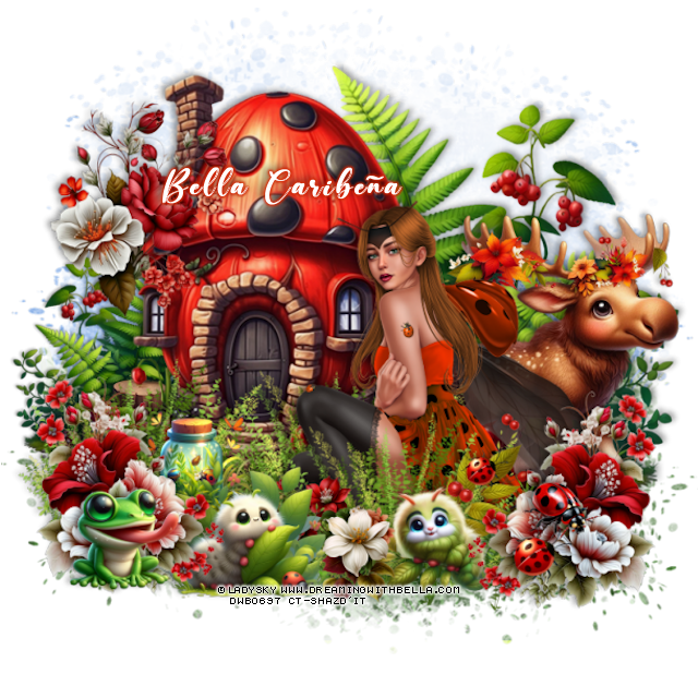 Resize element 7 to 25%, mirror, paste at the bottom below the flower.