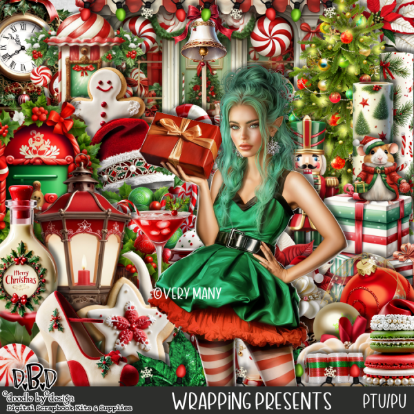 Resize element 42 to 30%, paste on the left above the gifts.