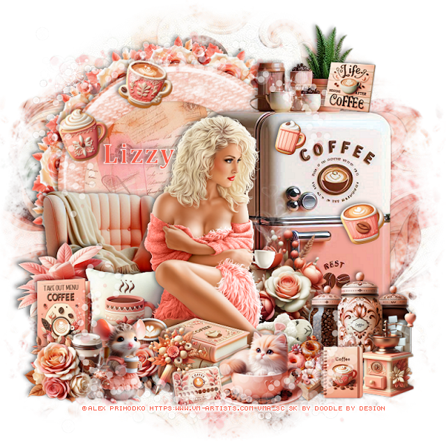 Resize element 1 to 50%, mirror, paste on the left below the flower with the coffee.