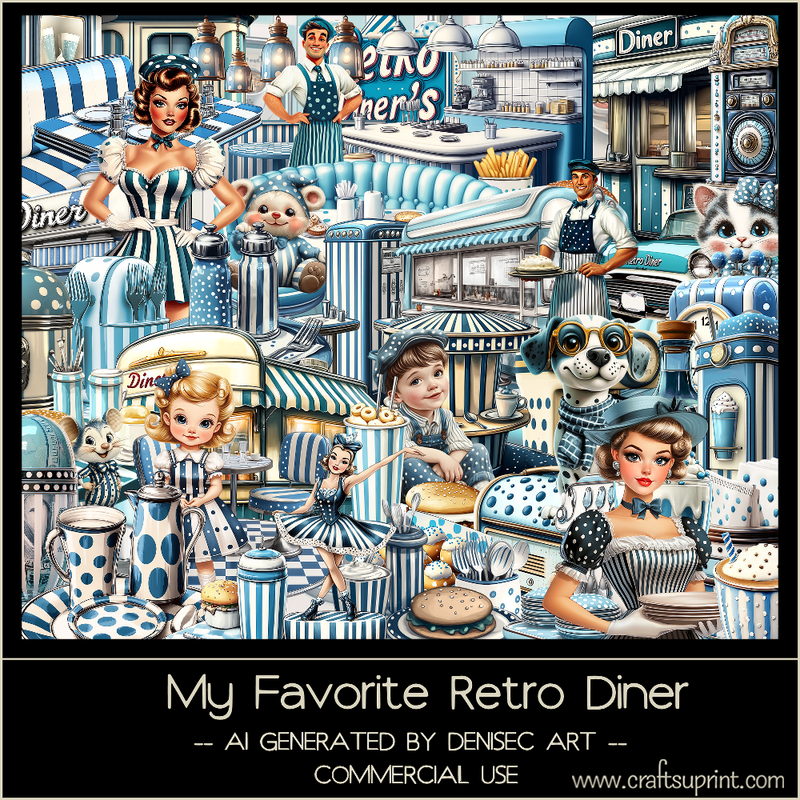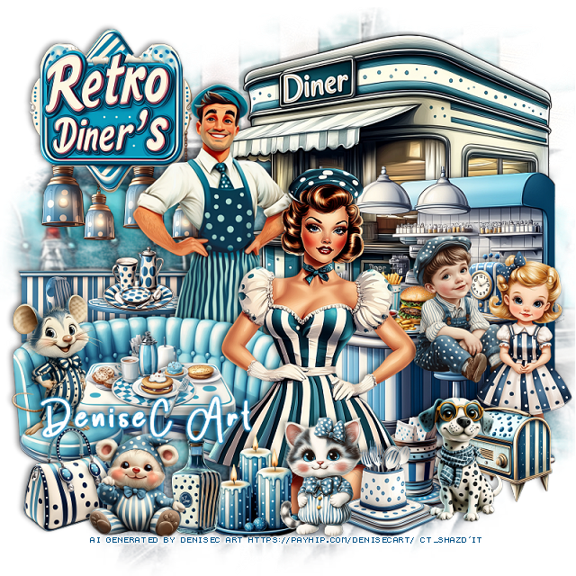 Resize element 17 to 35%, paste on the left below the diner sign.
