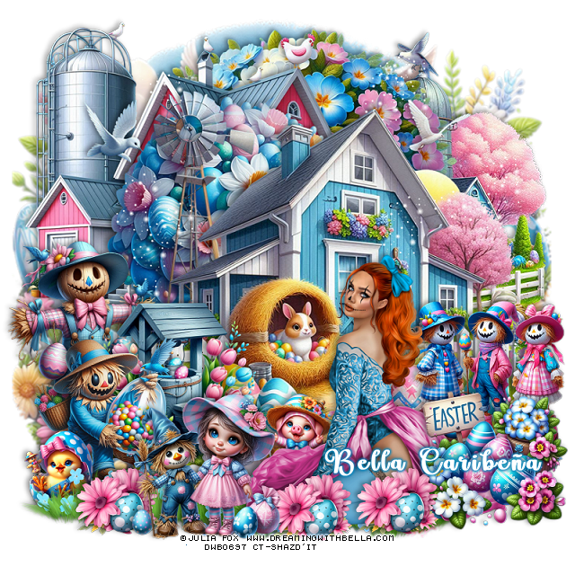 Resize element 37 to 35%, paste on the right below the Easter sign.