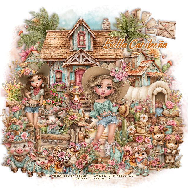 Resize the cow element 1 (the double little cows with the pink flowers) to