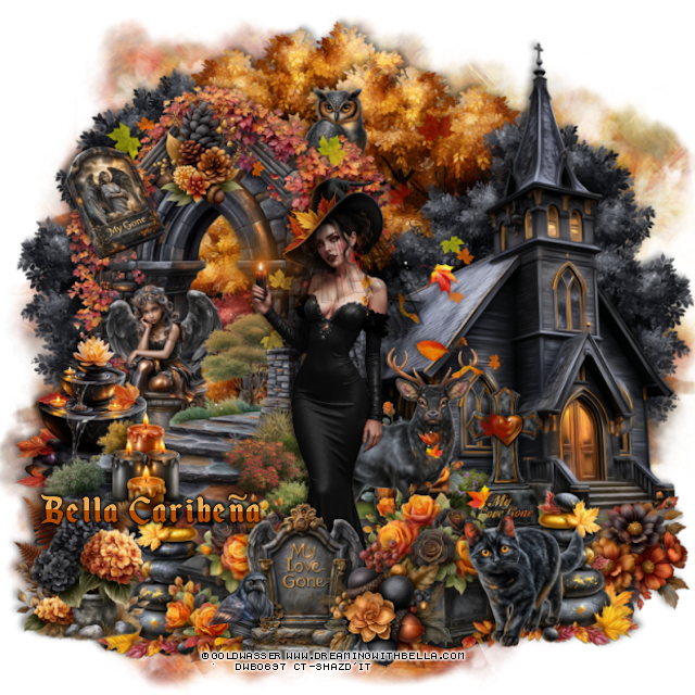 Resize element 51 to 18%, mirror, paste at the bottom by the headstone.