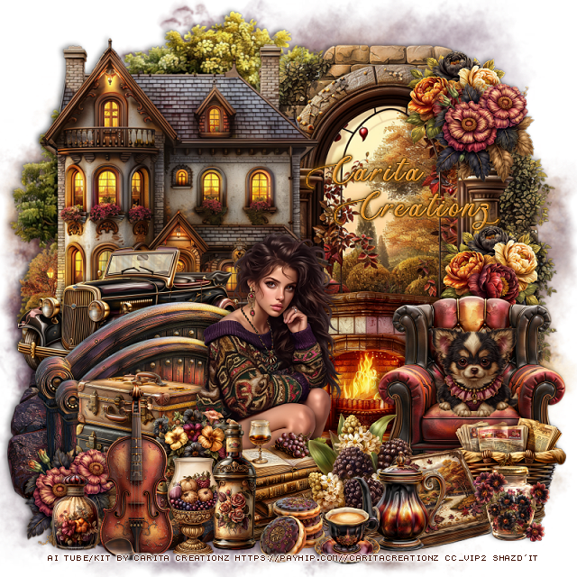 Resize the tube to 40%, paste at the bottom to the left of the fireplace.