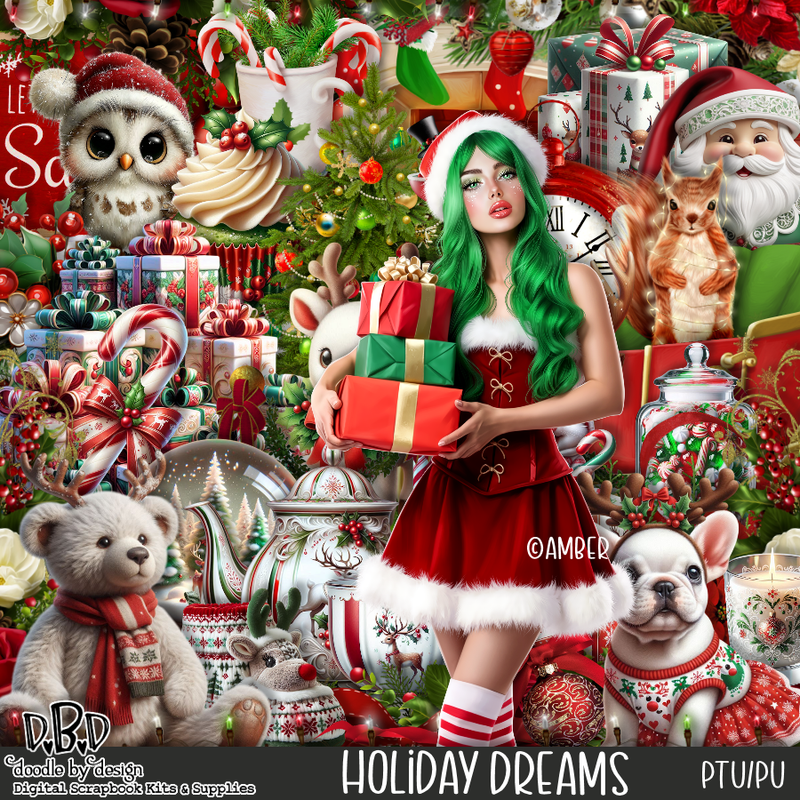 Resize element 67 to 25%, paste at the bottom right above the gifts.