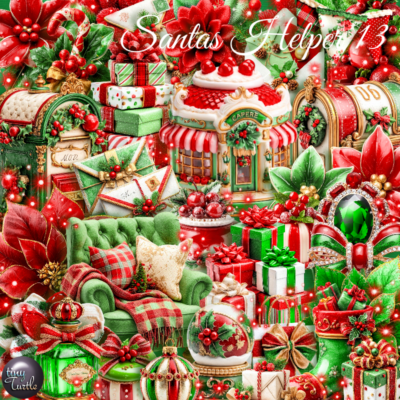 Resize element 60 to 20%, paste on the bottom left above the gifts.