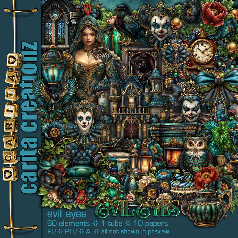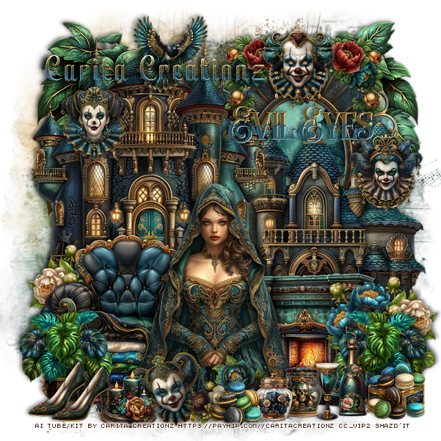 Resize 1 to 25%, paste at the top below the clown face on the frame, duplicate,